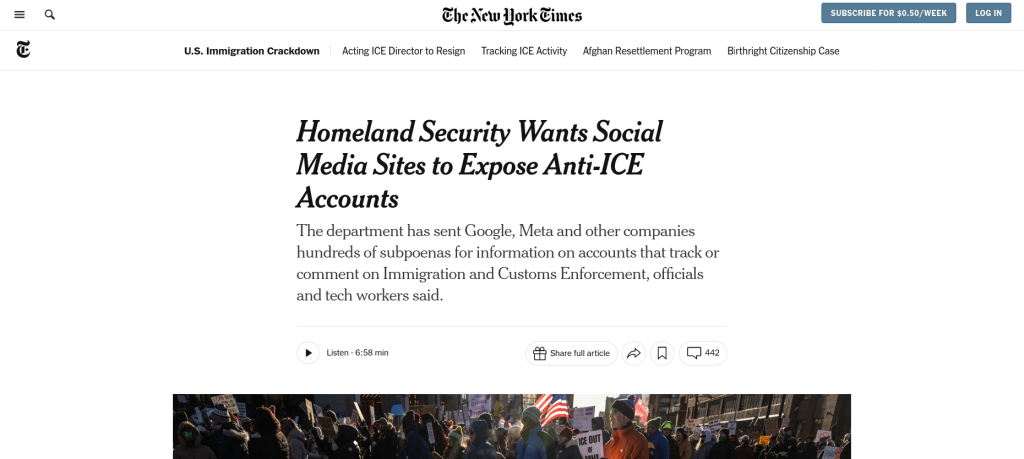 Why does the Homeland Security in the US want anti-ICE accounts exposed? You think the US government stands for democracy and freedom? The answer is obvious. They want to arrest those that chooses to critic them.